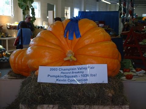 A front view of the 1036 Companion 03. This pumpkin was weighed at the Champlain Valley Fair and was grown on the 801.5 Stelts. Pumpkin was harvested early due to the start of a blossom end split.