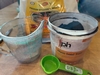 My final mix of the micro-nutrients is pouring the blend back & forth between a couple plastic flip-top bins several times, just to make sure everything is distributed evenly. I wear a mask when I mix this stuff. I hate wearing masks. Maybe it is needing to wear a mask that makes me not like doing my soil amendments?