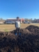11-16-2025 compost starting to look like compost should. 5 weeks and about 12 flips in the project. Had some good help hosing it down today. those blue shoes went home dirty enough that granddad got in in trouble.