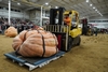 You can see the second forklift in the background getting ready to lift the pumpkin onto the scale.