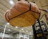 Here is the blossom side view as the pumpkin is placed right next to the scale. Topsfield runs two forklifts, one with the traditional forks to move the entry and pallet and another with the hook to attach to the ring for the actual lifting process. Overall, this system works out well and keeps the pumpkins moving and the crowd entertained.