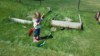 She insisted she be in the pircture with her plant but i think she just wanted to run threw the sprinkler a little