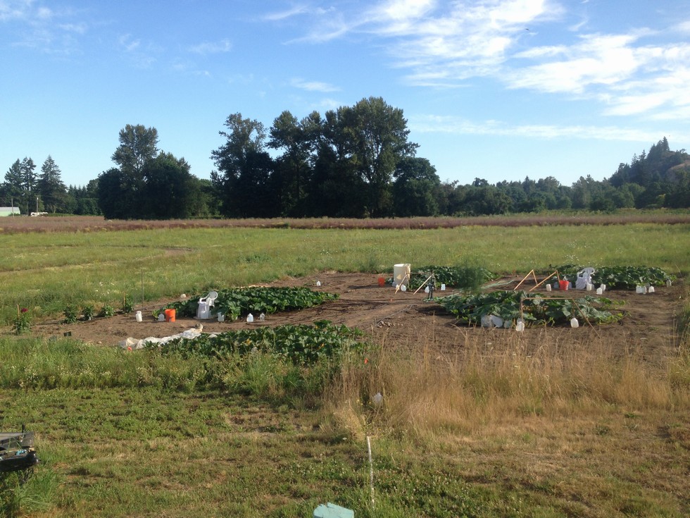 Clockwise from back left: 615 Cantrell offspring - green fruited 717 Holub offspring - green fruited 282 Scherber offspring Volunteer C. pepo (foreground) 1175* Holub offspring