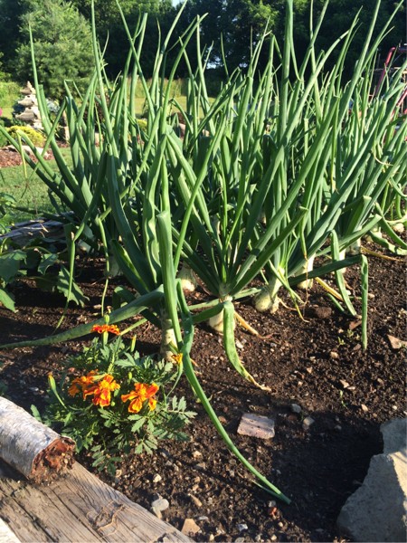 Everything really liked the 4 3/4" of rain .... These are the allysa Craig onions...I planted them 6-8" apart.. I wish I gave them more room...