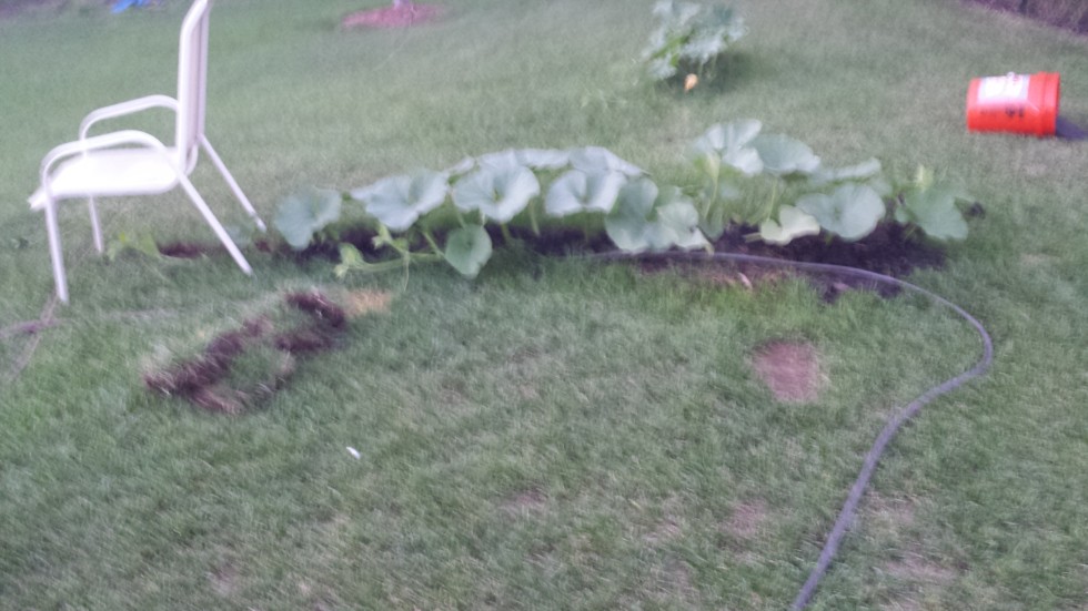 The plant in my yard thats been getting the most attention and it shows i think the vine is about 9 ft long i should really measure it its got 4 side vines that are about 2 ft long buried the vines on them tonight and extended the trench but theres a pumpkin about 8 foot down im gonna start spinning the main and try to get one set on this plant this week it should be ready im thinking