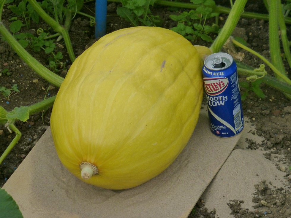 At DAP 15 this is Septuagesima; my younger pumpkin on the 538 Mu.Se and she measured 96 inches today so isn't quite big enough to estimate a weight on. A totally different shape and I would have preferred a fruit further down the main vine but nothing else seems to be taking. Oh well, looks like this is it, she also got given 6 cans of beer....hic!