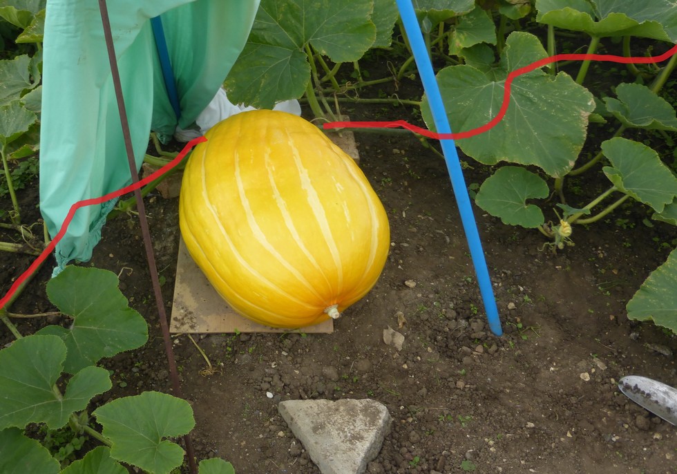 The 538 Septuagesima, measuring at 75 lbs...hard to get a picture of the main vine with my broken camera..but I gave it some support today to raise it up.