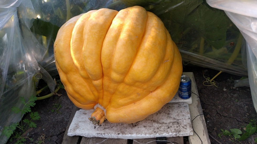 Well this year is turning out to be a bust. The unfortunate part of having a small garden is the lack of a plan B when the chosen one (plant and pumpkin) ends up to be a dud. Right now the fugly mutant is growing really slowly and is taping to 149lbs. I'm still not convinced this one will last another month and a half.