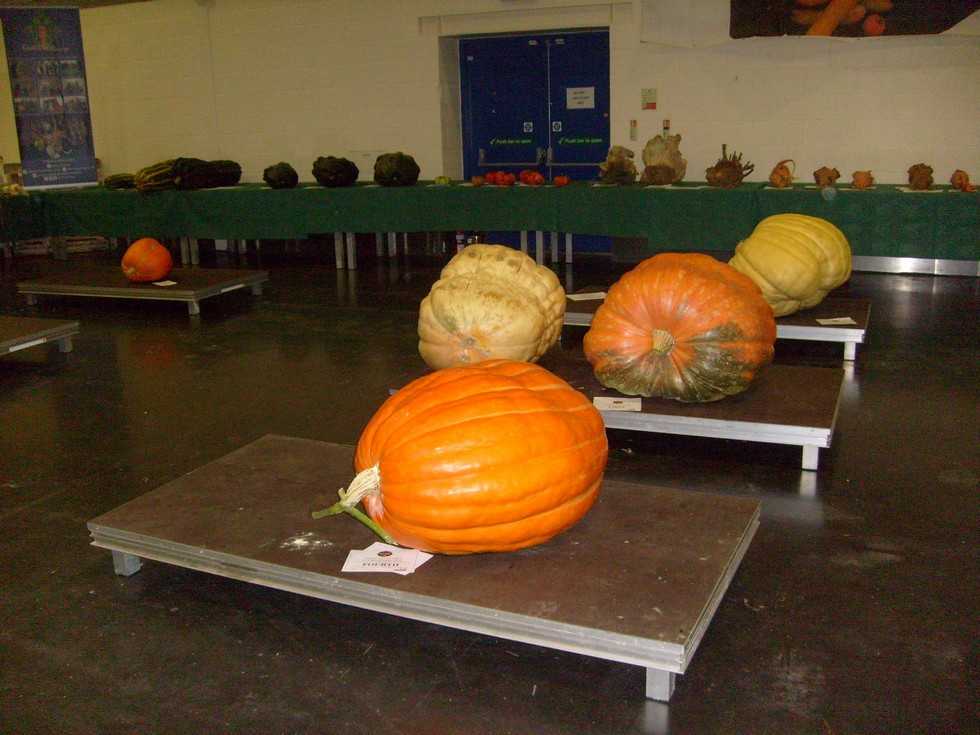 The room with giant pumpkins and some of the other giant vegetables.