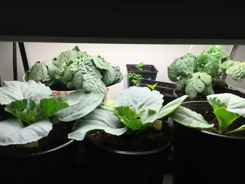 I have 2 watermelons, one of which is grafted, a couple of peppers,a carrot, and 3 giant cabbages. It's going to be a while before I can put any of these in the ground. Going to be interesting.