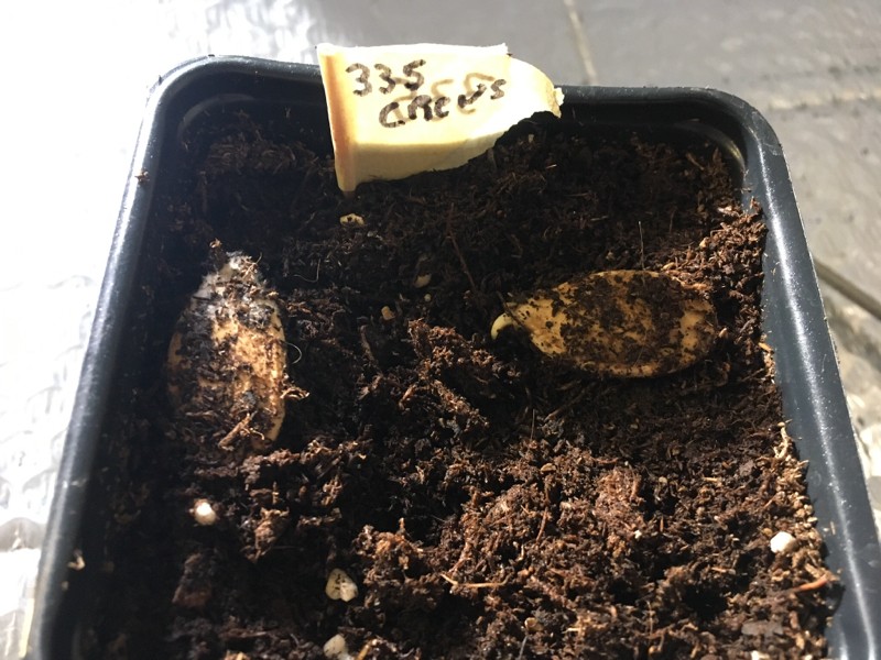 Trying to germinate some seeds from some somewhat immature pumpkins. I was having problems getting them to germinate so I just dropped a few on a small pot of seed starter mix in the chamber. I just turned them over once. This one received enough moisture to pop just sitting on top.
