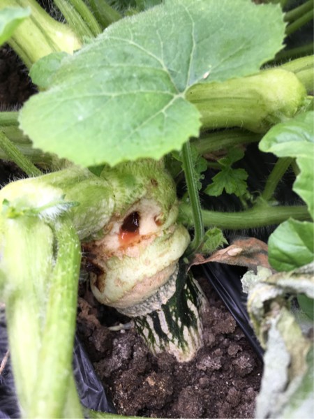 Oh oh. One of the vines died on the watermelon. Gave it a tug. It came of easy and left this behind, red,oozy,thick something.