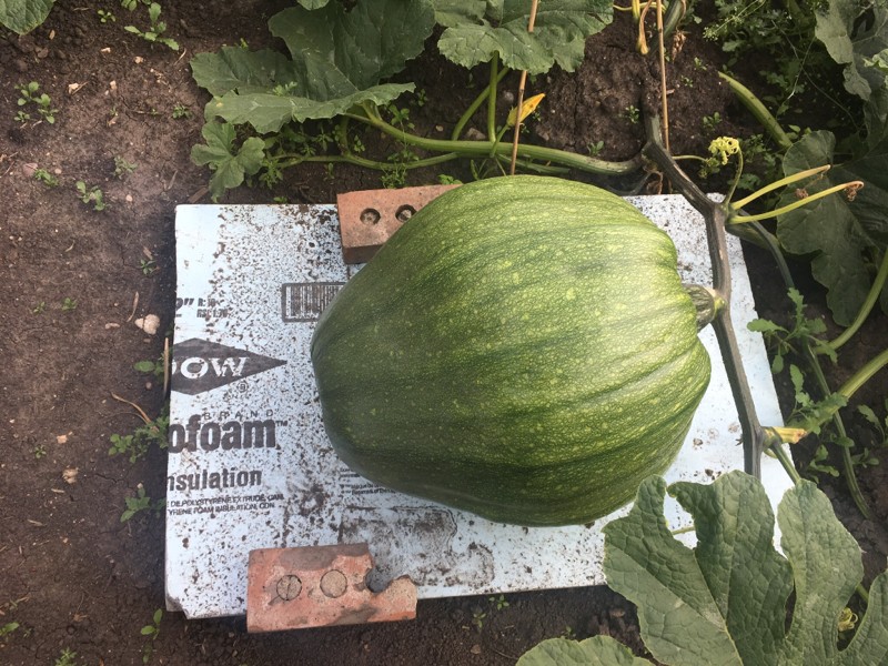 Cut this field pumpkin off the 189. This plant was throwing long ones. This one isn't. I only have 10 days left and no sizable fruit left on it. I betting on a weather miracle! I have some open pollinations at about 10 days to push.