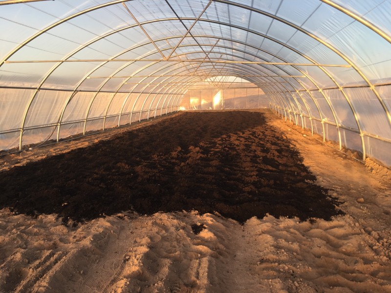 Hoy hemos a�adido el compost al invernadero. 20.000 litros. 100 kg de carbonato calcico, y 20 kg leonardita.
