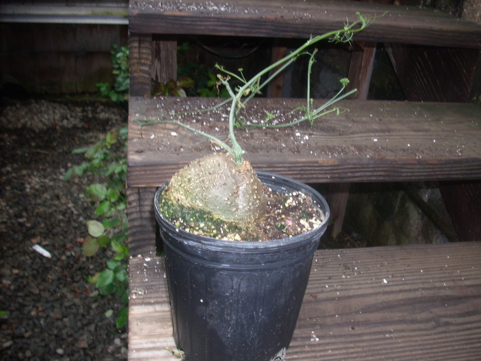 Kedrostis africana, also know as Baboons cucumber. Can you believe this is a cucurbit? A friend of mine gave me some seeds for this many years ago. I cut it back in the winter and in the spring it grows new vines. The vines produce these small little orange fruit the size of a wild blueberry. Many years ago Steve Wright, AKA West of the Blue Ridge had an idea to use a similar tuberous cucurbit like this one as a rootstock for melons. I think the species he was going to use was native to the America's, I can't remember which species. I am not sure if he ever tried out his idea. Steve is a very smart guy.