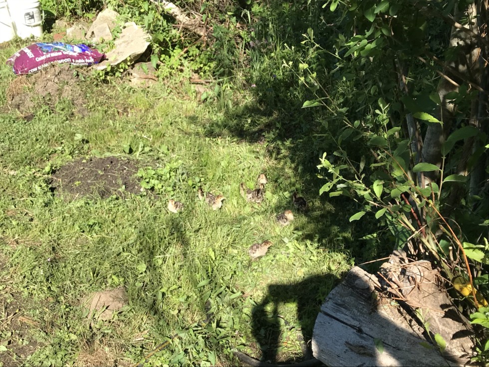 Found a flock of turkey chicks this morning in the back yard. Mom wasn't too happy