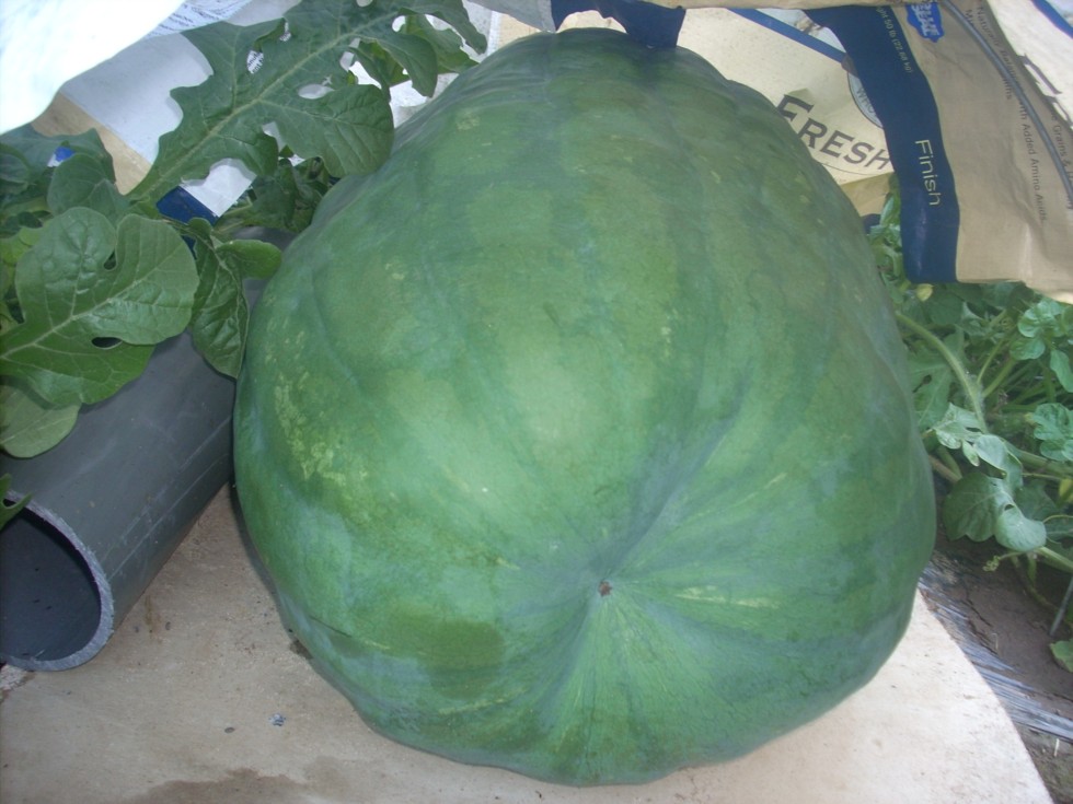 This melon is called big lumpy. An early July set on a CCx JBD that I lost the label on. Probably my 187, it could be off my 179 too. I will never know for sure. Usually I would have bypassed this melon for a better shaped one. But the darn thing stood out to me with it's good growth and I am glad I kept it, because for some reason the bees didn't do their job again until about ten days later when I finally had a decent amount of sets to choose from. I had a really long one on the main vine that was about ten days younger. It was a very hard choice to make. But I wanted the older one despite it's flaws. It is fairly close to the stump. Maybe 8'. THis plant shows the characteristic striped longer melons with the dark rind. I prefer that look. My other two plants really look like Black Diamonds. I wonder what color the seeds will be.