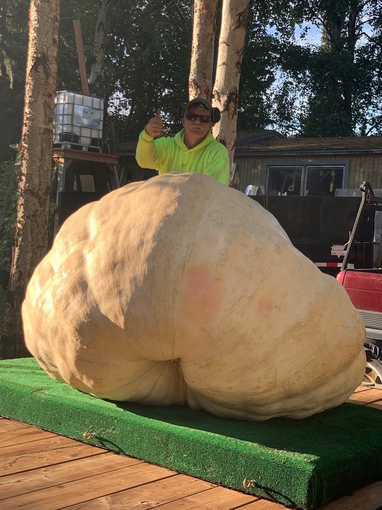 My growing season has been over for a while now , but here are a few pics, this is the 2005 x 2051 cross, as it was heading to the weigh-off ...now the 1742.5 Marshall
