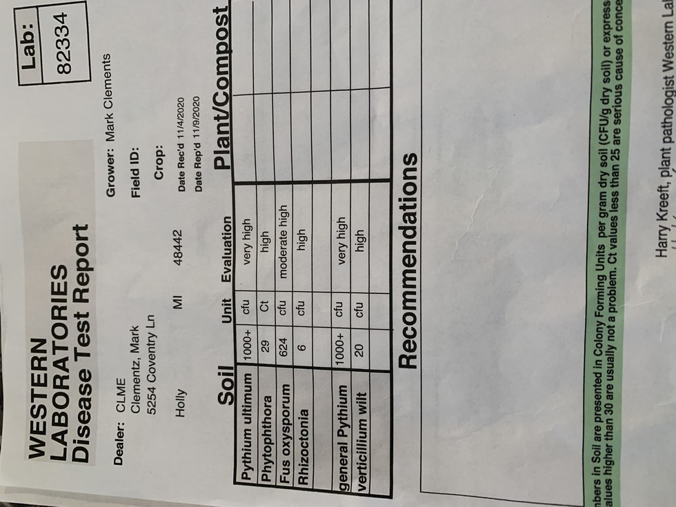 Disease test results are back.I was going to grow at Chucks.I guess not.I will not grow in less I can find healthy soil.If you are not hitting 2000 lb kins.Soil disease maybe your problem. Just something you might want to spend 140$ to find out