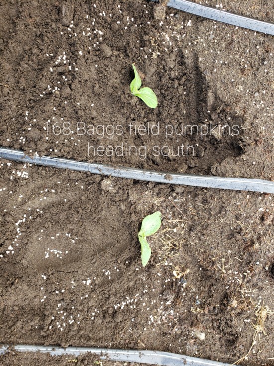 Growing across from the other field pumpkins are a couple of Mark Baggs'. One if these will grow in the opposite direction.