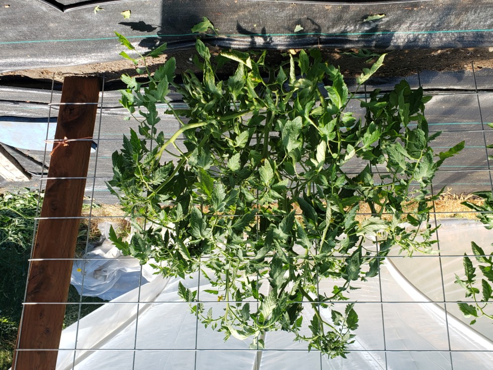 Here's my 9.44 LaRue plant. The tomatoes are getting misted periodically and fanned to survive the heat. They've got shade cloth too.