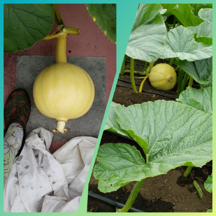 Meanwhile, my 2183 Mendi has aborted its earlier set, but I have a side vine one within the leaves that survived the heat, and a slightly younger and smaller main vine one. Even though there's a crack in the stem/vine, I think I'll cull the side vine fruit because it's kind of ribbon, and not in a great location.
