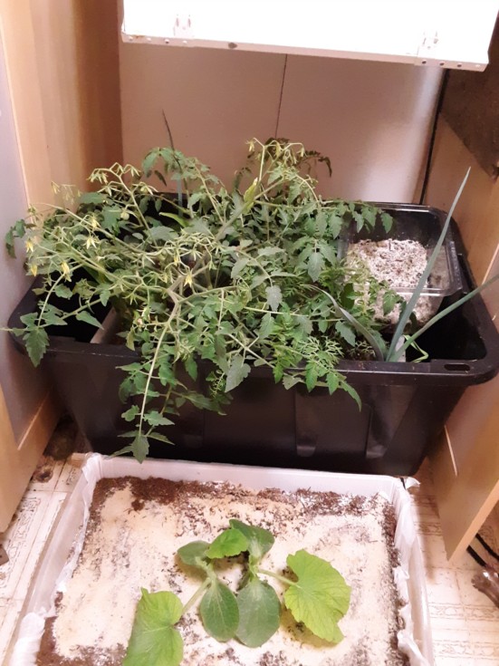 Winter tomato liked the sodium bulb a lot, it went crazy. Pumpkins on the other hand have been unhappy with the homemade potting mix. So... round 3 coming up, one last attempt to salvage this debacle. (There wont be a Round 4/ Round 4 will be the purchase of a bag of potting mix.)