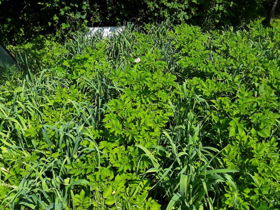 Garlic and potatoes are being perfect companions. And, speaking of perfect companions and gardening: those who dont enjoy fighting shouldn't start fights... because they will reap what they sow. Lesson learned, hopefully.