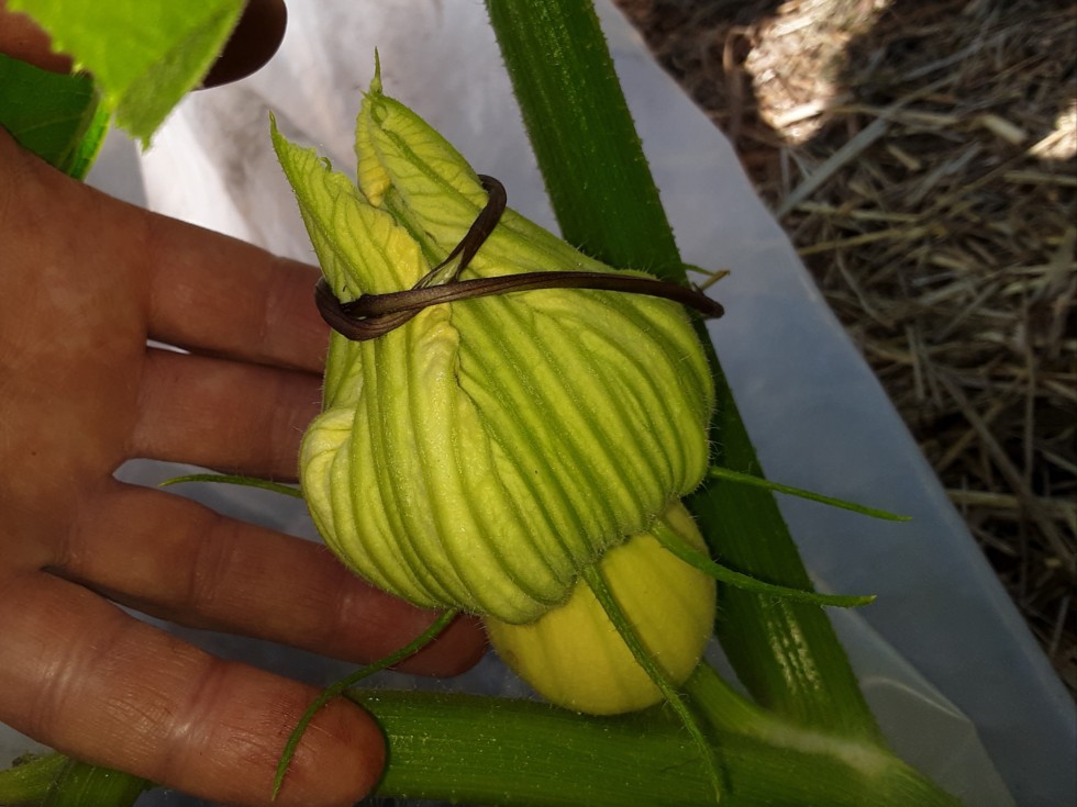 An big baby pumpkin on a side vine. 7 sepals, not sure the stigma lobes yet. The stigma lobes= ovaries and the ovaries are basically hollow so that part isn't important to me.