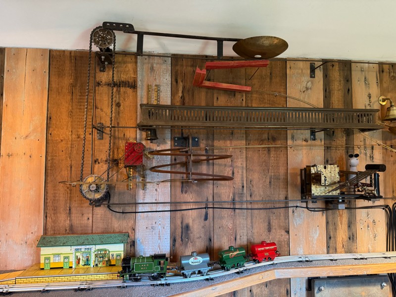 I've been building a wacky marble machine for years now and still photos don't really do it justice. I have a 1930's electric model train that will run outside in a tunnel at the back of the shed.