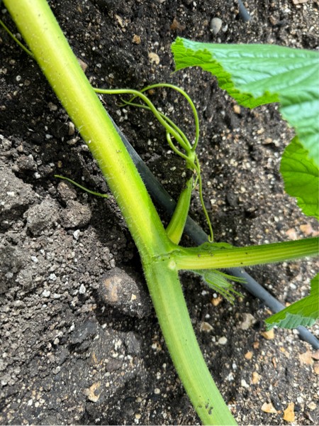 Rather annoyingly the main vine on one of the Wolfs slipped back into a hollow from it's two supporting bamboos. It's cracked about on third of the way through. It's not the greatest of plants as it's missing lots of secondaries but I did pollinated a nice pumpkin three leaves in front of the crack this morning.