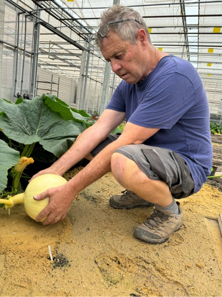 Really clean hands are needed for the twice a day repositioning. We just lift them up and use the weight of the pumpkins to strengthen them out.