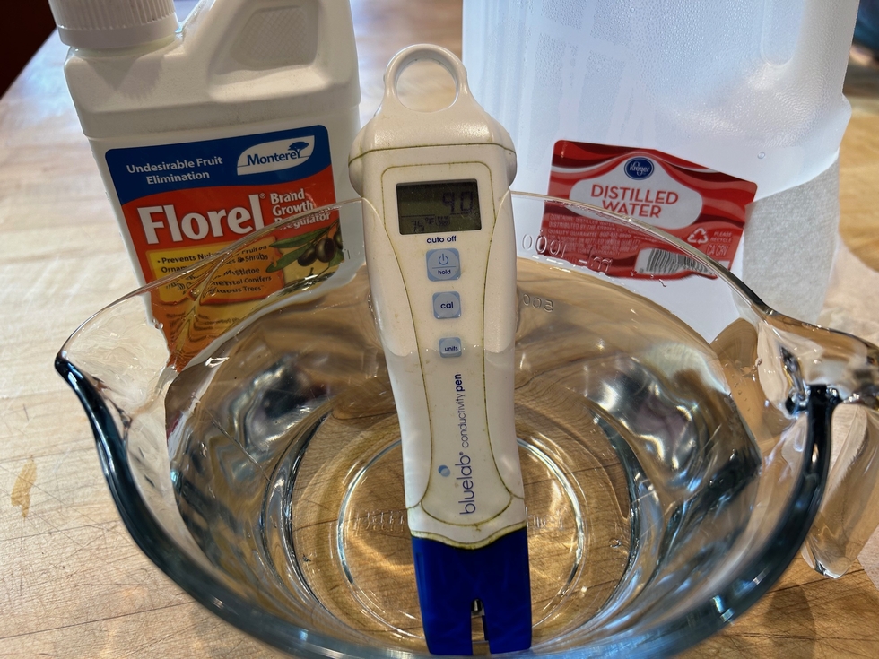 I have been applying Florel to all of my �keepers� 48 hours after pollination. It needs to be mixed to 100 ppm in distilled water. I use a spray bottle to apply it to the fruit. I leave the blossom on the fruit until after the Florel is applied so the mixture does not get onto the �lobes�. I have not been using Florel on my back-up fruit (the next female on the vine which I would consider growing that has been pollinated). Florel will extend the time the fruit is in the cell division stage�which hopefully means that it will form more cells so that when it moves into the cellular expansion stage there will be more cells to expand resulting in a bigger pumpkin!