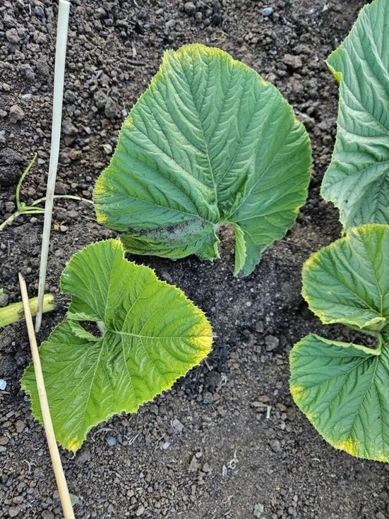 I stopped by one of our PGVG member's house yesterday to check out his patch. He has done a lot of work amending his soil to follow Cecil's recommendations derived from the soil calculator. He got an early start & had great initial growth while the plants were in his 8'x10' hot houses. Since they have been outside their growth has slowed down. The plant shown in this pic is growing leaves with yellow edges after being outside. I have an idea about what the problem is�but we are interested in what your thoughts might be. Post them here! Let's see if we can help him figure out what's wrong!!!