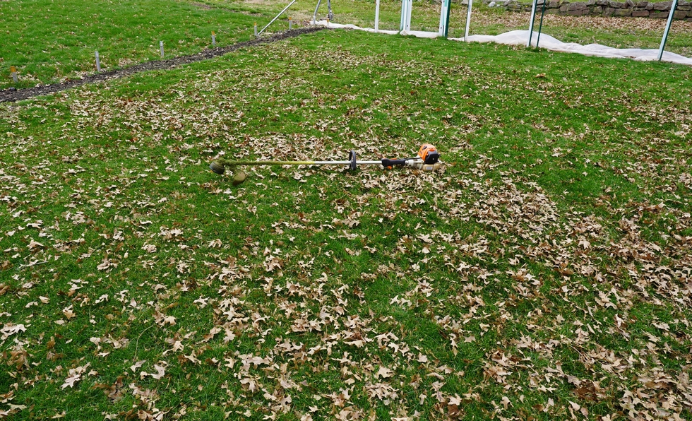 Today the focus was on initial site preparations which started off by weed-whacking the grass down to close to soil height. The reason for this is to help make the amendment application and tilling process to come shortly, as easy as possible.