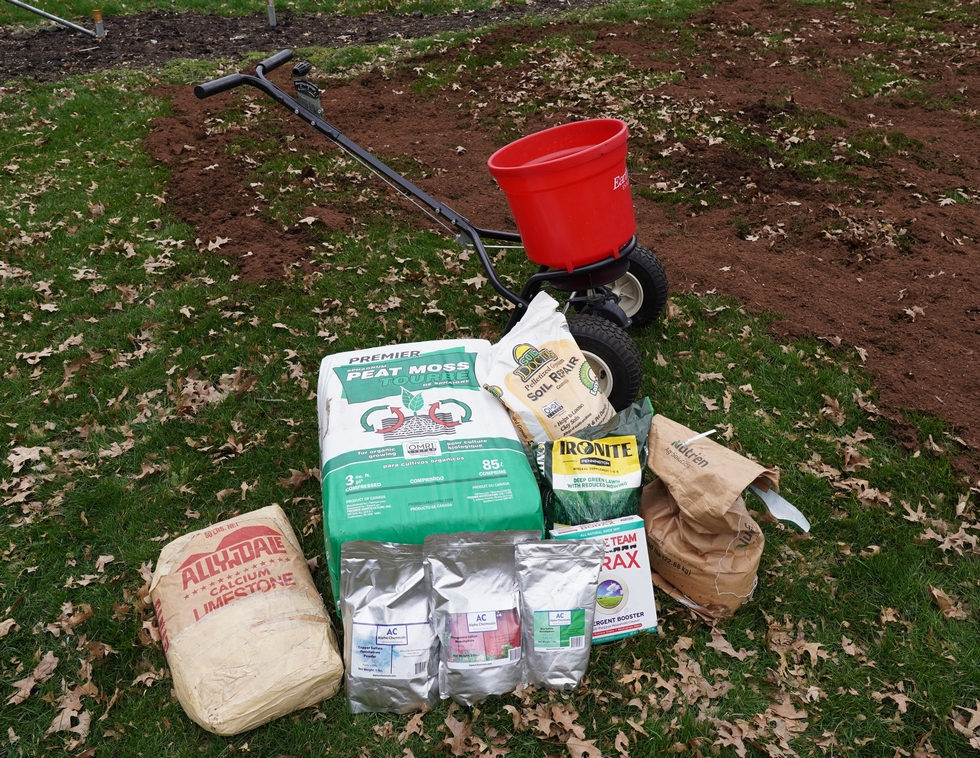 Here is the line-up of nutrients added to the growing site for this year. While there may be a bag of each shown in the image this does not represent the exact quantity added. For the actual numbers this is calculated with the results of a soil test. However, the list is as follows that was applied over about 1,100sq.ft. of growing space� -Calcitic lime (50 lb) -Peat Moss (33 cubic feet added) -Gypsum (160 lb) -Sulphate of Potash (0-0-50) (30lb)