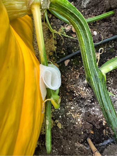 It's really important not to let any of the vines touch the side of the pumpkin because they tend to infect them so some soft plastic works well.