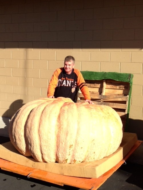 This was my 1578 Pugh from 2013. When I saw it was going to be a wheel I decided to grow it on a pallet with the stem down. Maybe I will do it with the 2287 Sadiq wheel I have going now. I believe that this is the best way to keep a wheel from splitting. It is a real pain to set up, but it worked for me 11 years ago�back when you could be 4th at Half Moon Bay with a 1578 pound pumpkin!