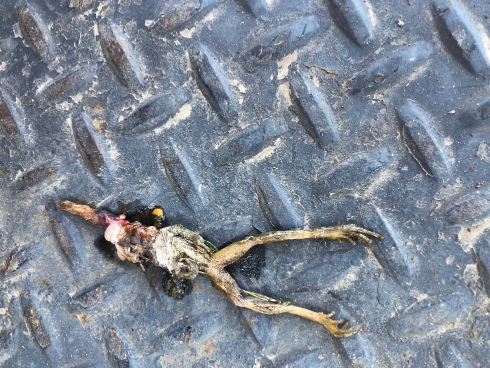 When we made it back to Eugene after Elk Grove we discovered that although the frog might have brought the pumpkin good luck, it wasn't very lucky itself.
