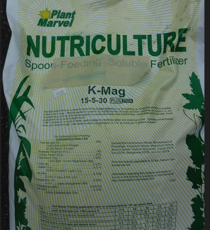 Nutriculture K-Mag 15-5-30 (plus trace elements) *Note: The tape is due to a tear in the bag.