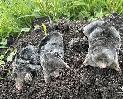 My mole trapper stopped by today to check the traps he set last week. Now we know that there are three fewer moles in my patch & yard than there were last week! Since Sunday there are no new mole hills or visible tunnels on our property. He did set ten more traps in the hills that they made last week after he set the first round of traps.