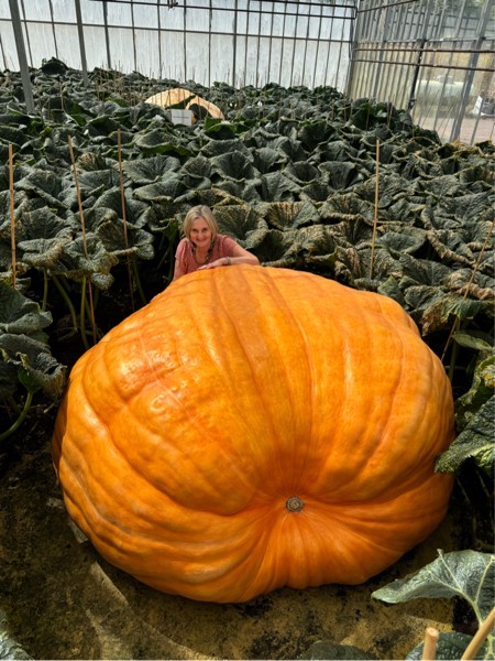 This photo of Sarah and the Wolf really shows just how big these pumpkins are getting.