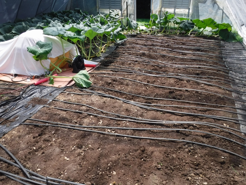 Despite the disappointment, the goal is to take this mid-season plant removal to evaluate the growing practices up to this point to identify weak spots or areas of improvement for future years. Typically, the grower can be the hardest on themselves, and even with this, there is not much suggestions for improvement. Plant material is clean inside and out. There were a few spots of Powdery Mildew and a few Whiteflies, but nothing to be concerned about. The weed control is �VTJohn� level. Drip tapes provided even watering and soil was consistent from old to new growth. Overall, the roots are in good shape, evident by the challenge to remove the vines. The pruning was good which makes the removal organized and efficient.
