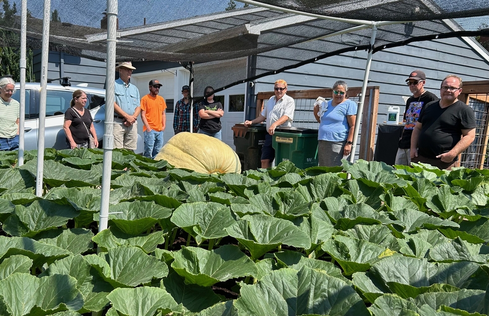 The PGVG had its annual patch tour yesterday. The club did something a little different this year. All of the stops were urban patches, with the intention of showing what anyone who has even the smallest scrap of a yard can grow. This pic show's Olivia Bucks' patch. It is approximately 250 square feet wedged in between her driveway and the sidewalks which border the front corner of her property. On day 40 her 2501 Bernstrom plant is taping to 540 pounds! I think it could end up at 1250 pounds. That's pretty cool!