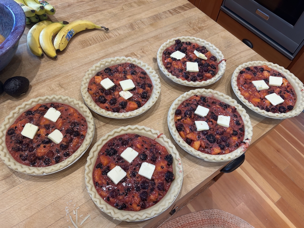 Now that most of the hard work is finished, it is time to get nervous & excited about what the end of the season might hold. I am having a hard time wrapping my head around the fact that I currently have a pumpkin sitting in my patch which tapes to the same size as my personal best, and another one which is just a few pounds behind it. So I do things like pick way too many blackberries & make more pies than we will ever eat�just to keep from losing my mind.