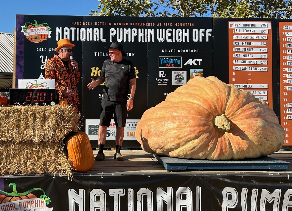 Cole Hocker the Pimpkin weighed 2301 pounds at the Hard Rock/Bishop's Ranch contest yesterday. It was almost a 300 pound personal best for me�but wasn't enough to win. Apparently the rainbow really did start at Mulino, Oregon over Jim Sherwood's patch & not mine!
