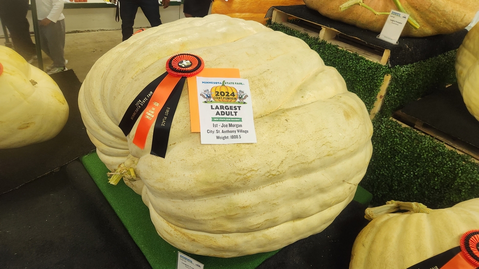 The new Minnesota State Fair 2024 record....1808.5 Morgan 2024 (2222 Gienger x Self) This fruit also went heavy but the fair is not a GPC event so the usual inspections, cutting stems, measuring OTT does not happen. I personally took a look over this fruit and she was 100% and was like slapping tank armor. Congrats to Joe!