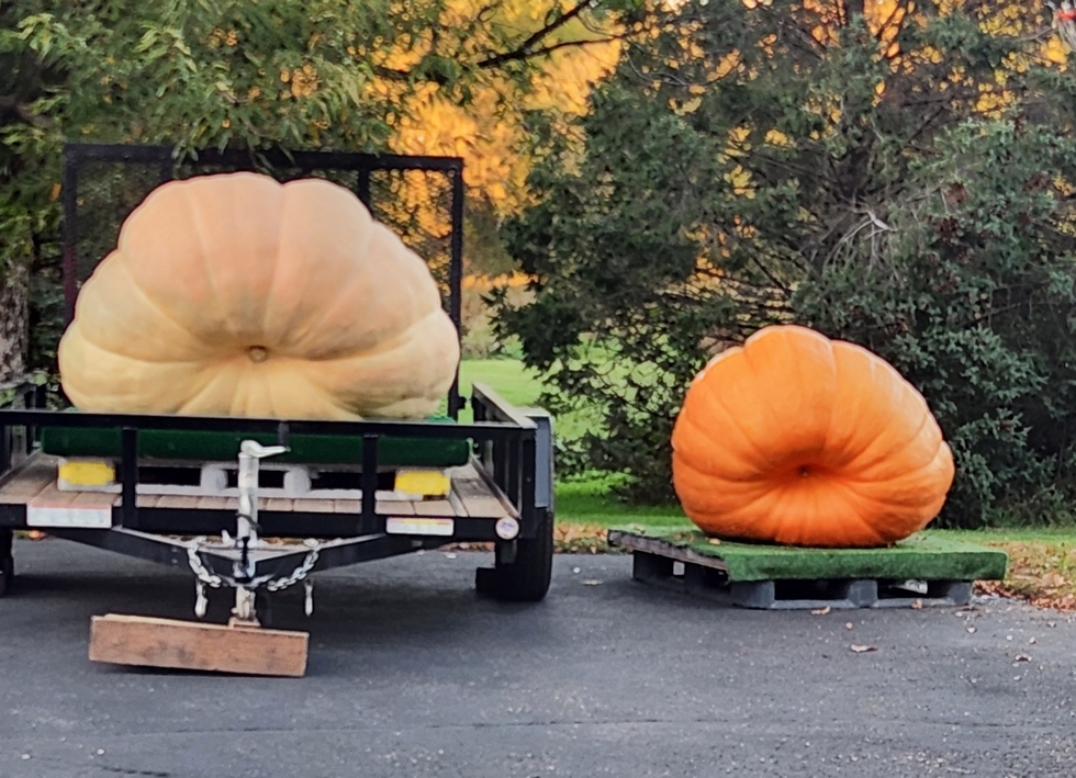 I took back my 810 pounder from the state fair to put on my driveway this fall. Here is the 810 lined up against the 1,193 pounder on the trailer.