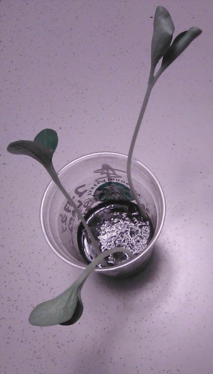 Yeah, I like 'em leggy, green being a probable plus, lol; Here's them FPs o' mine and I just merely spring tap-watered them; February 17th to 25th. The idea here was to just use about 1/3 the cup's normal depth of SS Mix and let them get leggy, followed by filling up the rest of it with the remaining, many-times-reused SS Mix. I am certain that the Myco originally 'installed' in the SS Mix, nearing a year ago, MAYBE, is always doing its job. It is like the worms in the Patch that get tilled and some killed in early summer - Yet, a month later they are reproducing and ducking outta sight as I simply look the Patch over for fun at night - or whilst getting male flowers. The Cycle of Life. PS---I put a Men's Daily Vitamin in the SS Mix to see how it'd do as a simply-different source of possible nutrients. No MG in this particular setting. eg