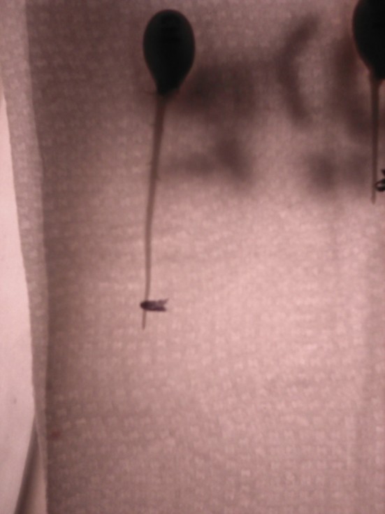 Upon sprouting, moved it to the side of an end table lamp with a black metal clip to hold 'er up.